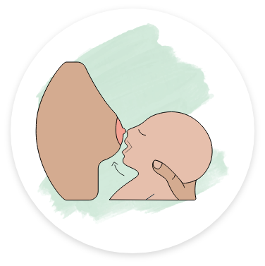 As they press their chin into the breast and open their mouth, they should get a deep latch. When your baby has a good latch, they can breathe at your breast and their nostrils will flare to allow air in. Check to make sure your baby’s nostrils are not blocked by your breast.