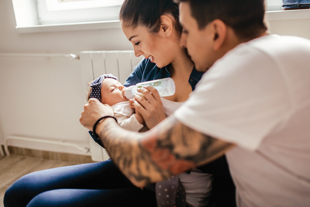 Your baby needs about 4-6 oz of iron-fortified formula every 3-4 hours.