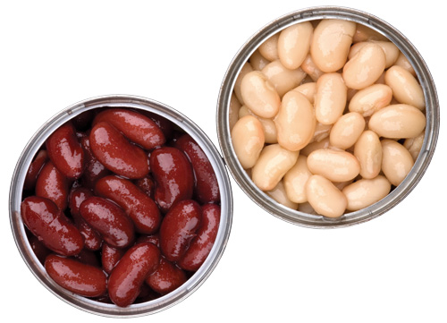 y ¼ de taza de habas pintas y ¼ de taza de habas rojas